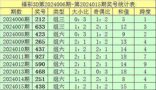 上期回顾:福彩3D第2024015期奖号:438。