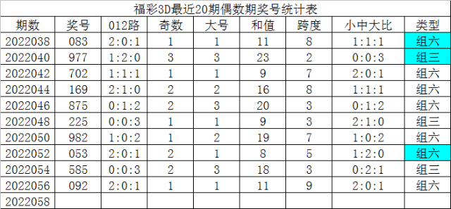 福彩3D最近20期偶数期奖号为: