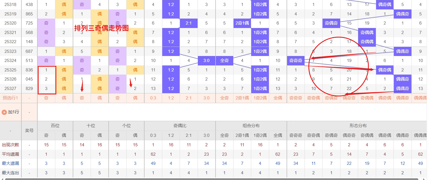 排列三 奇偶分析:从上图可以看出排列三100期内百位奇偶比约为52比48,十位奇偶比为49比51,个位奇偶比为53比47,十位的比值比较均衡,但是百位的比值偏差就有点大,历史奇偶形态近2期开出偶偶奇后下一期的走势为,第262期开出偶偶奇后263期开偶奇奇, 第284期开出偶偶奇后第285期开偶偶偶,第294期开出偶偶奇后第295期开奇偶奇,近期排列三奇偶走势来看,形态“偶奇奇”和“偶偶偶”已持续多期未出,均处于明显的冷态区间。历史数据显示,奇偶组合在经历一定周期的遗漏后,往往会有回补需求,尤其是当冷态持续时间较长时,其反弹概率会逐渐累积。当前整体奇偶分布存在动态平衡的规律,热门形态频繁出现后,往往伴随着冷门形态的阶段性回归。因此,需密切关注“偶奇奇”与“偶偶偶”这两种冷态组合的解冻信号,所以排列三2025328期奇偶形态推偶奇奇与偶偶偶。