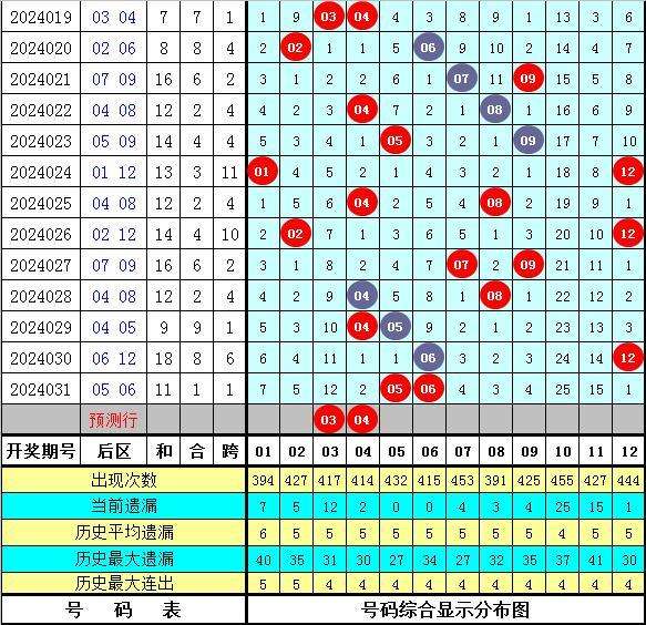 前区和值、跨度分析:上期和值为100,大幅度上升23点,本期注意和值转向,出现在100附近;跨度方面,最近10期分别开出跨度25、14、23、26、32、15、15、30、22、25,跨度奇偶比为5:5,012路比为3:3:4,本期注意跨度29,龙头凤尾关注06、35。