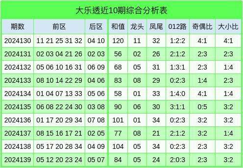 奇偶比分析:上期前区奖号奇偶比为2:3,偶数较热,在最近10期开奖中,前区奇偶个数比为23:27。本期需要关注奇数出号,奇偶比关注3:2。