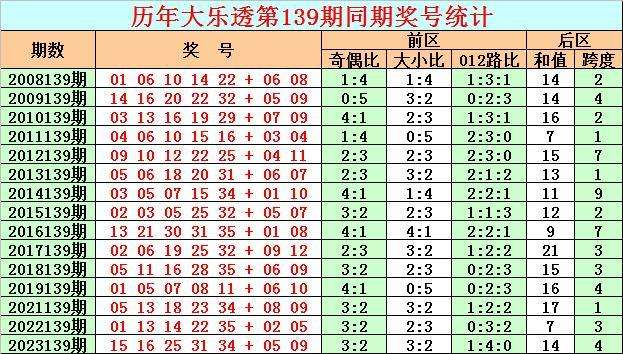 开奖回顾:体彩大乐透第2024138期奖号为:05 17 20 28 34 + 04 09。前区号码奇偶比2:3,大小比3:2,012路比为0:2:3。后区号码和值13,跨度5。