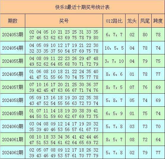 快乐8第2024063期012路号码分析