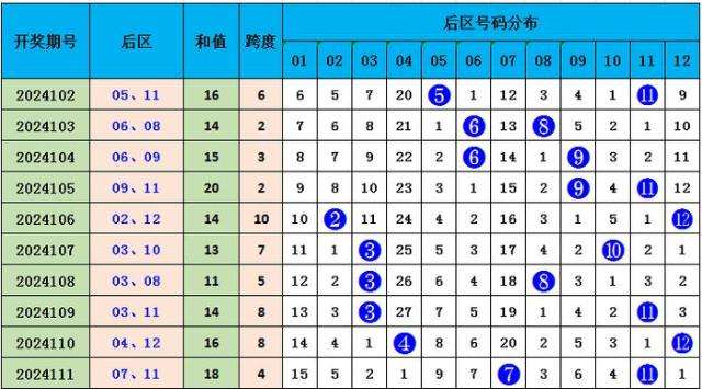后区第二位:上期开出奖号11,近10期开奖分别为:11、08、09、11、12、10、08、11、12、11,开出奇数5期,开出偶数5期,奇偶走势均衡,本期看好开出奇数奖号,参考号码:05。