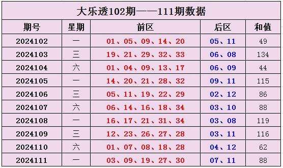 大乐透第2024111期出奖号统计:前区03、09、19、27、30,后区07、11。和值为88。