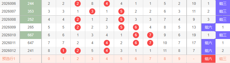 组选胆码定位以“012路号码”为核心规律依据,通过近10期0路(0、3、6、9)、1路(1、4、7)、2路(2、5、8)的出号特征推导下期胆码,具体分析如下: