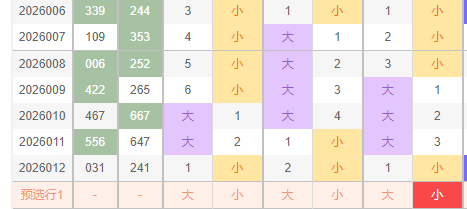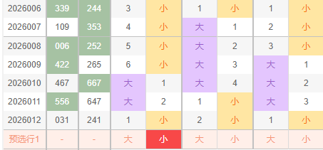 2026013期福彩3D个位,根据图上标记规律,最近20期内个位小后出小规律,此规律已出现一组,所以个人分析013期内出现小号概率很大,如图中所示据规律概率理论值来分析,2026013期个位开出小号概率很大,所以本人分析2026013期个位出小号,可以参考个位:01234。