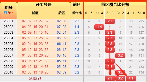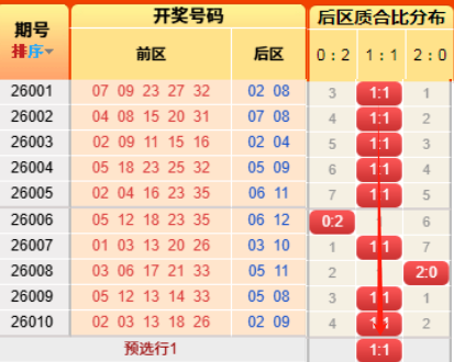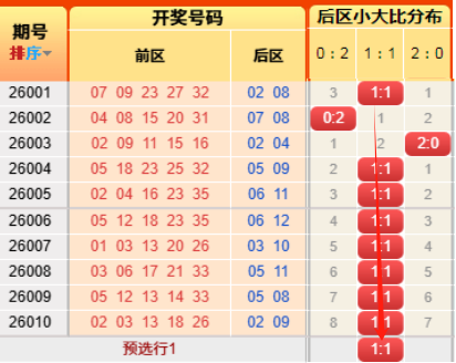 上期后区开出小大比为1:1,又命中啦。