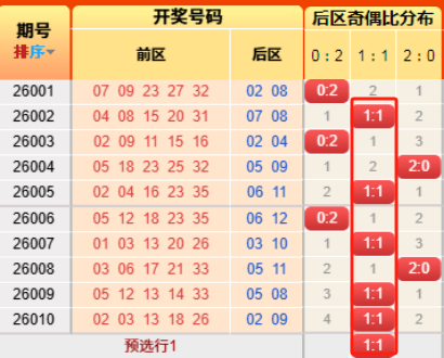 上期后区开出奇偶比为1:1