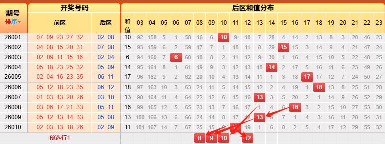 4、后区和值