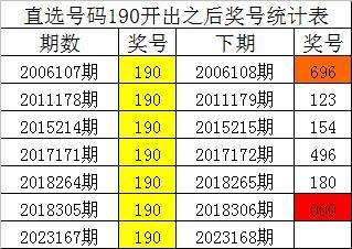 从上表统计可以看出,直选号码190开出之后,其下期奖号: