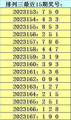 一、体彩排列三第2023167期奖号为190,该号码历史上直选出现了7次,组选出现了40次。