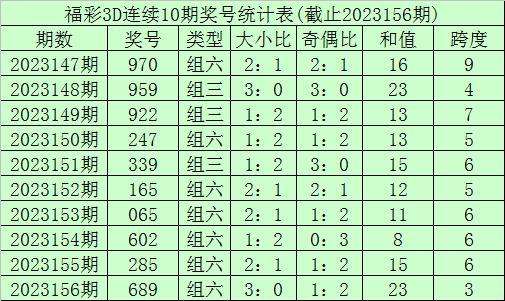 开奖回顾:福利彩票3D第23156期奖号开出689。奖号类型为组六,奇偶形态为偶偶奇,大小形态为大大大。