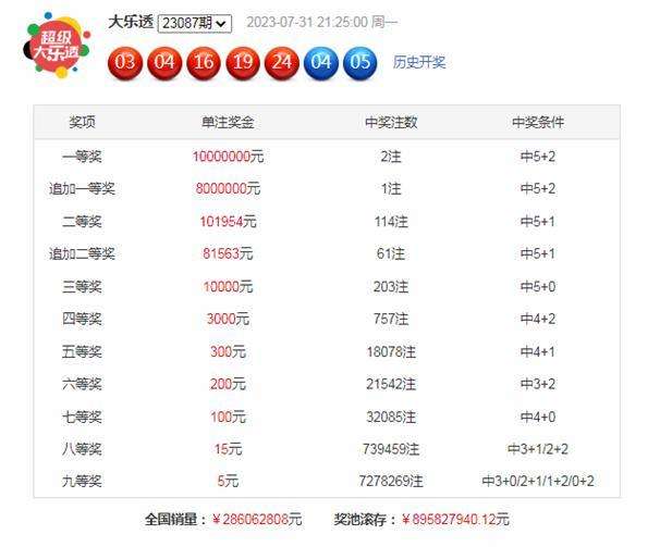 享乐大乐透第2023088期单挑一注:01 10 12 31 35 + 09 12