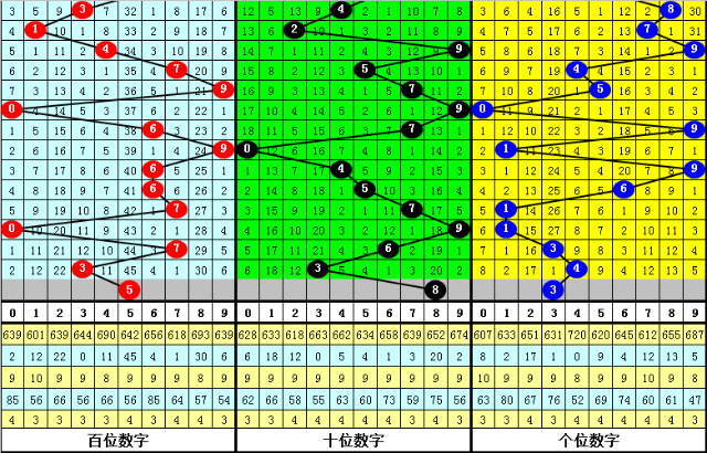 个位分析:该位最近10期出现范围在0-9之间,波动了10个点位,波动范围较大,上期开出号码4,上升了1个点位,本期防止该位下降。另外该位最近10期012路号码比为5:4:1,0路号码走势较热,本期看好0路号码再次开出,关注号码3。