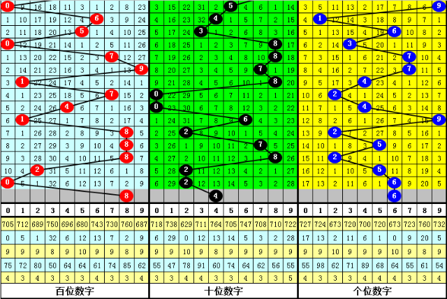 百位号码:第22045期-22049期奖号为:8-8-8-2-0,振幅为8点,分布较分散,本期预计百位走高,关注号码8。