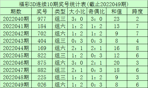 开奖回顾:福利彩票3D第22049期奖号开出026。奖号类型为组六,奇偶形态为偶偶偶,大小形态为小小大。