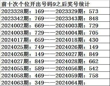 四、个位分析:上期开出号码9,前10次号码9出现之后下期同位号码为:3895099228,其中号码大小比为6:4,基本相当;奇偶比为5:5,相等;012路比为5:0:5,0路号码表现相对活跃。本期参考号码:3。