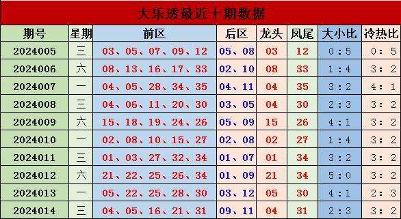 上期回顾,大乐透第2024014开奖,本期奖号:前区04 05 16 21 31;后区09 11,当期前区号码大小比为2:3,三区比2:2:1,奇偶比3:2。前区开出连号04 05,开出重号05。