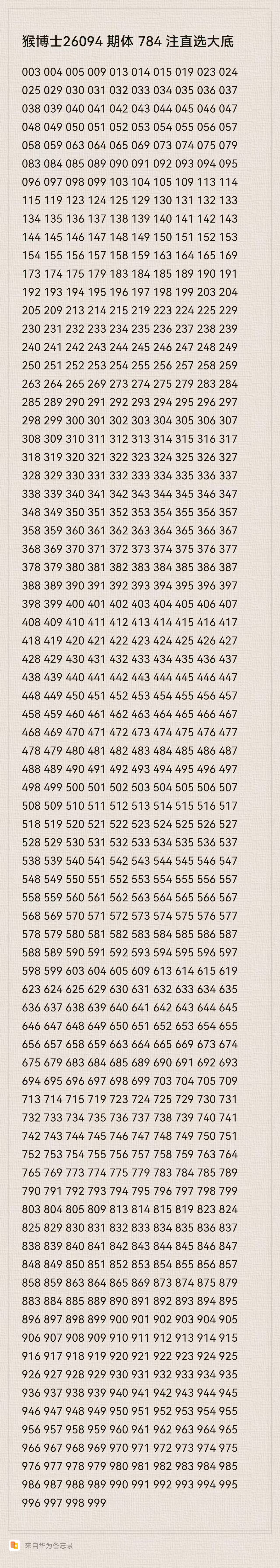 猴博士26094期排列三784注直选大底:(可以当母底用,然后进行缩水)