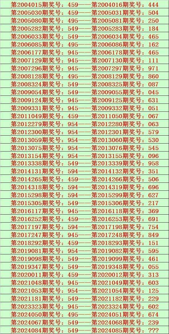 排列三第2024085期开奖日期:2024年4月4日,历史上第085期已开出了19次奖号,历年同期号码分别为:942、495、878、010、198、296、995、478、527、243、416、997、722、334、612、835、996、279、557。