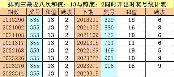 开奖回顾:体彩排列三第2023314期奖号为:355。和值为:13,跨度为:2。