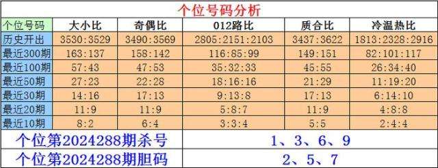 排列三十位第2024288期杀号:2、5、8、9
