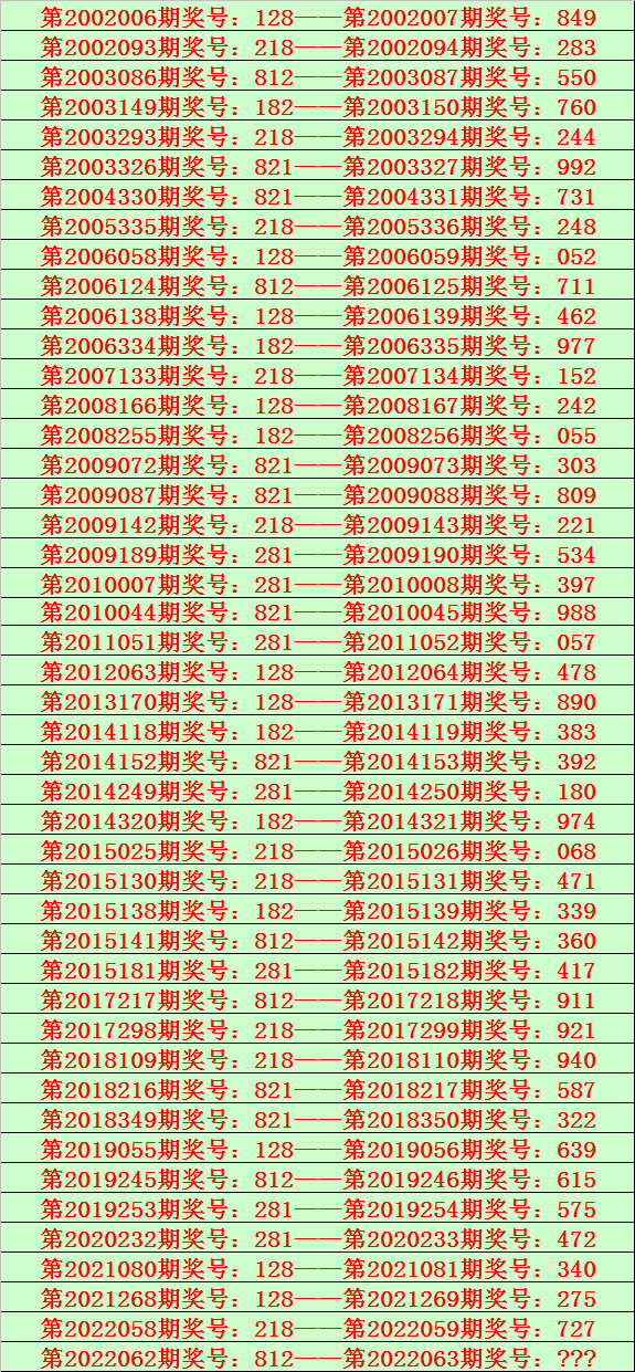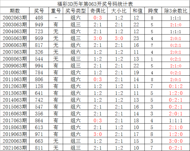 福彩3D第2022063期开奖日期:2022年3月14日,历史上第063期已开出了20次奖号,历年同期号码分别为:408、949、723、959、817、326、544、994、784、806、128、641、742、547、356、864、613、971、663、811。
