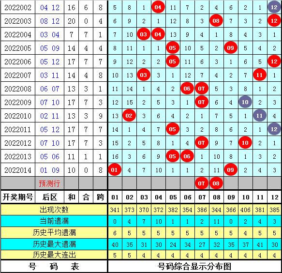 后区号码分析:在前7周星期一开奖中,后区奇偶号码个数比为8:6,奇偶号码走势基本相当,后区大小号码个数比为9:5,大号明显活跃,本期后区防全大组合,关注号码07、08、09、12,精选两码07、08。
