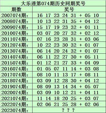 黑天鹅大乐透第2023074期历史同期奖号分析