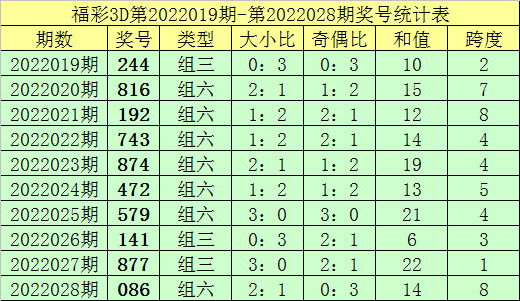 上期回顾:福彩3D第2022028期奖号:086。