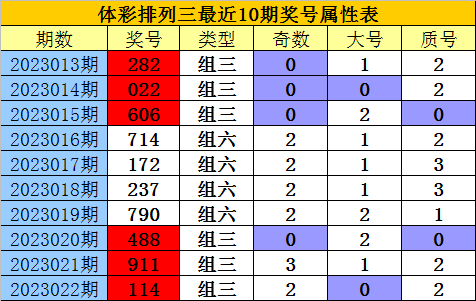 开奖回顾:排列三上期开奖号码为:114,大小比为0:3,奇偶比为2:1,质合比为2:1。