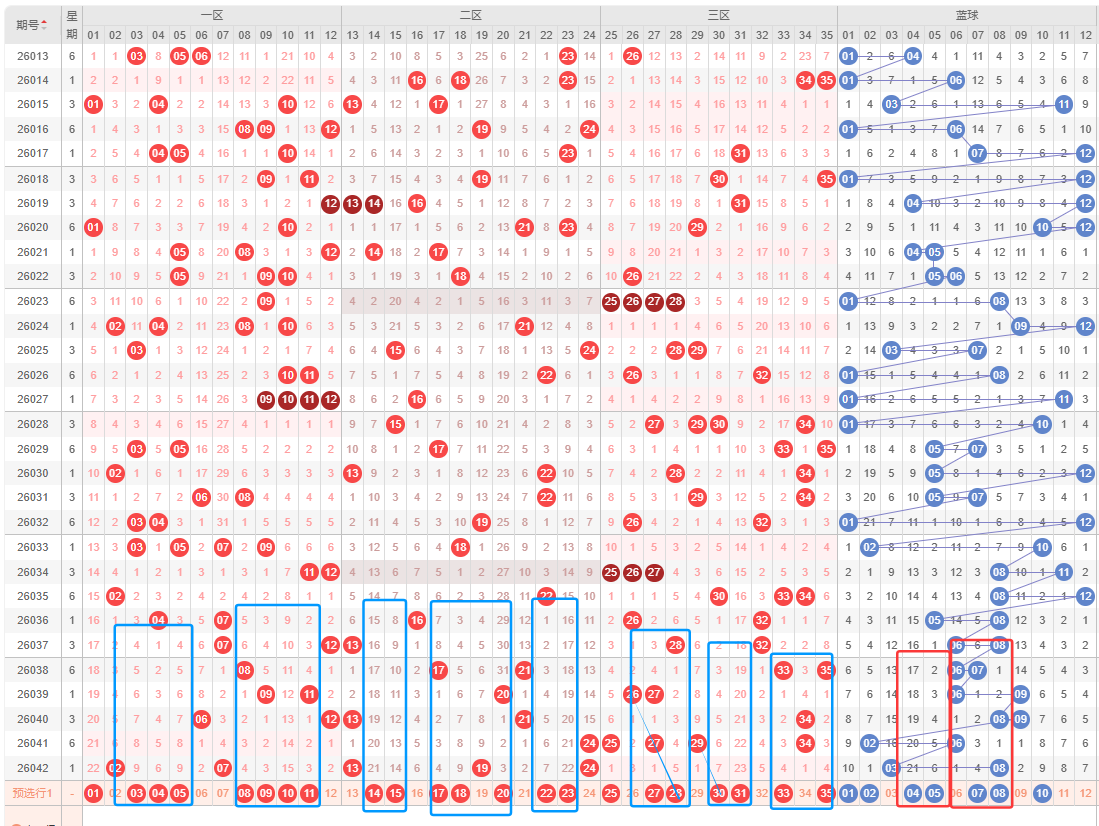 蓝球区,蓝球第一位开了奇数质数,整体上看...(其他思路留给会员文章哦)。