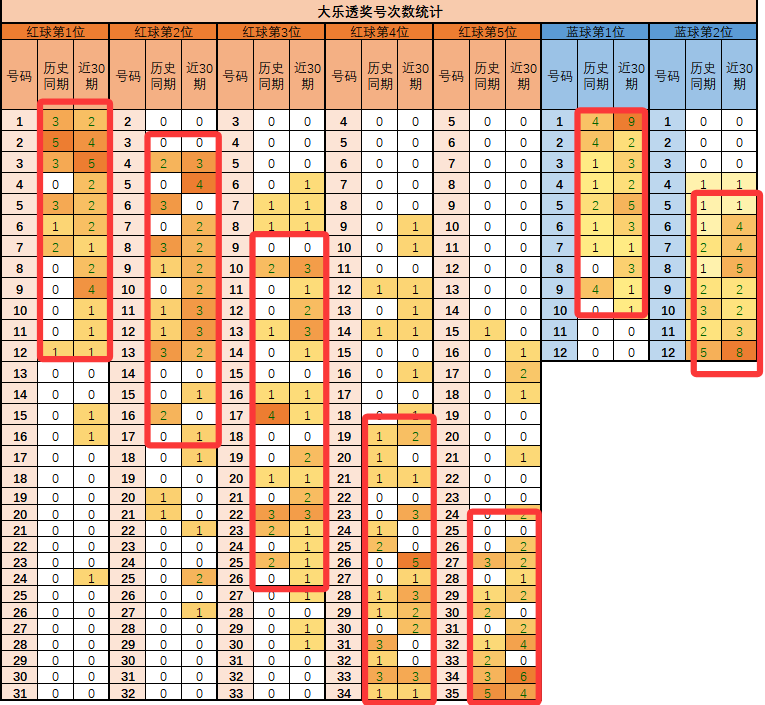 统计历史同期、近30期奖号频率,热门摸底,灵感来源