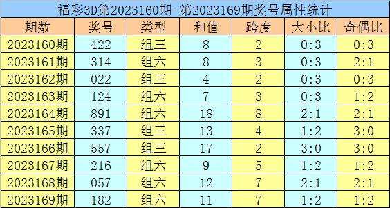开奖回顾:福彩3D第2023169期开出奖号182。奖号形态为组六,奇偶比为1:2,012路比为0:1:2,大小比为1:2,和值为11,跨度为7。