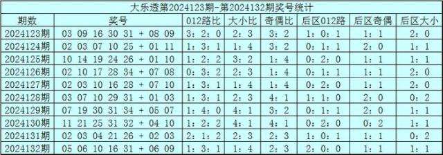 赵研大乐透第2024133期奖号012路分析: