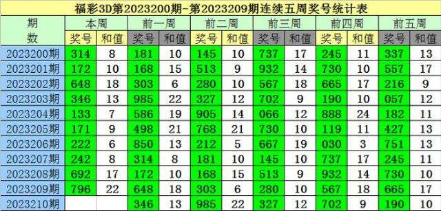 老梁福彩3D第2023210期综合推荐: