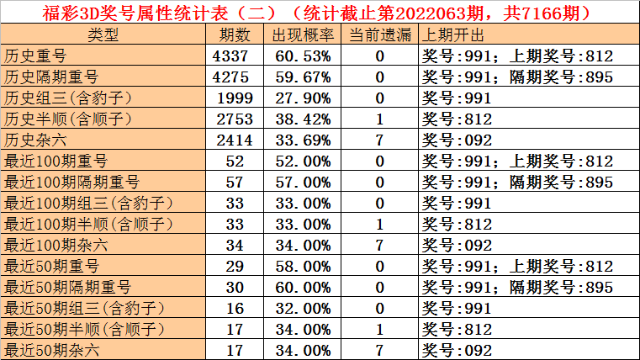 上期奖号:福利彩票3D第2022063期开出奖号991。