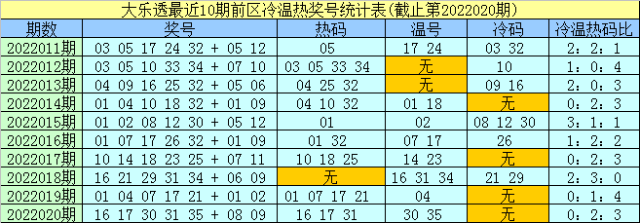 孟浩然体彩大乐透第2022021期奖号冷温热码统计(冷码:遗漏9期以上的号码,温码:遗漏4-9期的号码,热码:遗漏0-3期的号码)