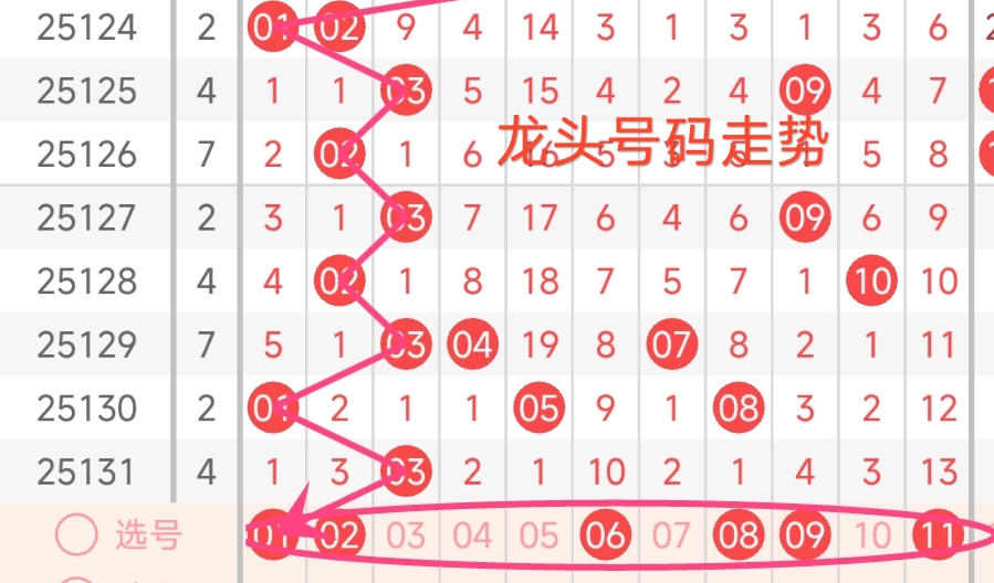 龙头号码走势分析:
