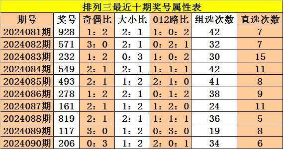 上期回顾:体彩排列三第2024090期奖号:206,奇偶比0:3,大小比1:2,012比2:0:1。