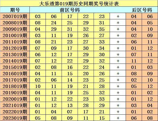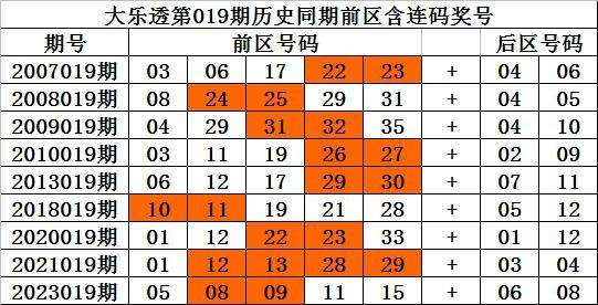 7。在历史同期奖号中,后区和值大小比为9:8,基本持平,本期适当关注大号和值开出。