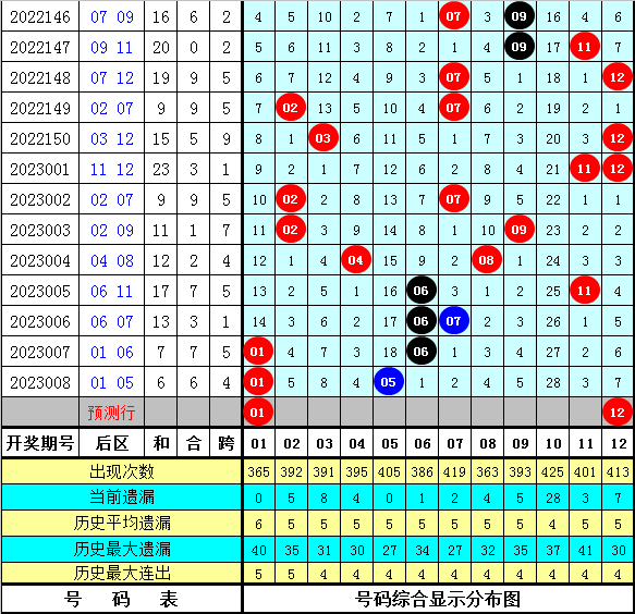上期回顾:大乐透第2023008期开出奖号:04 09 17 22 25 + 01 05,前区包含5个尾数:2、4、5、7、9,后区开出全奇、全小组合。