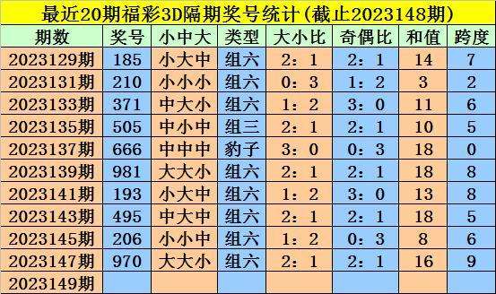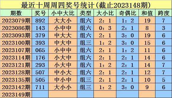 奖号类型判断:近期周四组六明显活跃,近十周开出7次,当前轮空2周,组三出现较少,本周四看好在组六。