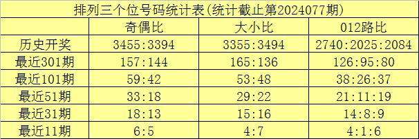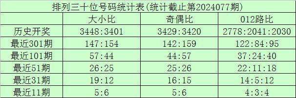 在连续11期奖号中,该位奇偶比为5:6,奇数出现较少,本期适当关注奇数回补;