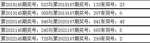 与前期历史同期奖号对比分析,在最近五年开奖中,第145期同期奖号与第167期同期奖号都出现了相同号码: