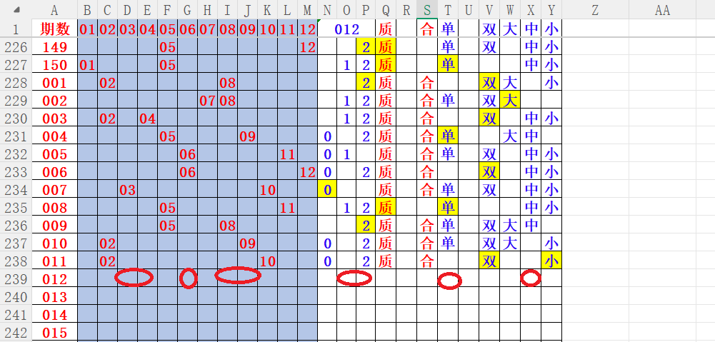 如上图4,012路分析012路,本期重点12路。重点 03 04 06 08 09