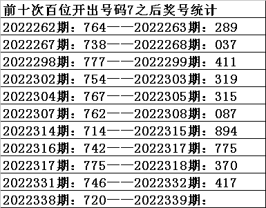 二、百位分析:上期开出号码7,前10次号码7出现之后下期分别开出号码:2043308734,其中号码大小比为2:8,大号走势较冷;奇偶比为4:6,基本相等;012路比为5:3:2,1路号码走温。本期参考号码:7。
