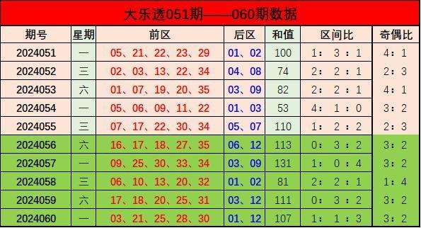 大乐透24060期开奖,本期奖号:前区03、21、25、28、30后区01、12;当期前区号码三区比为1:1:3,奇偶比为3:2。形态方面,前区未开出连号;开出重号25。
