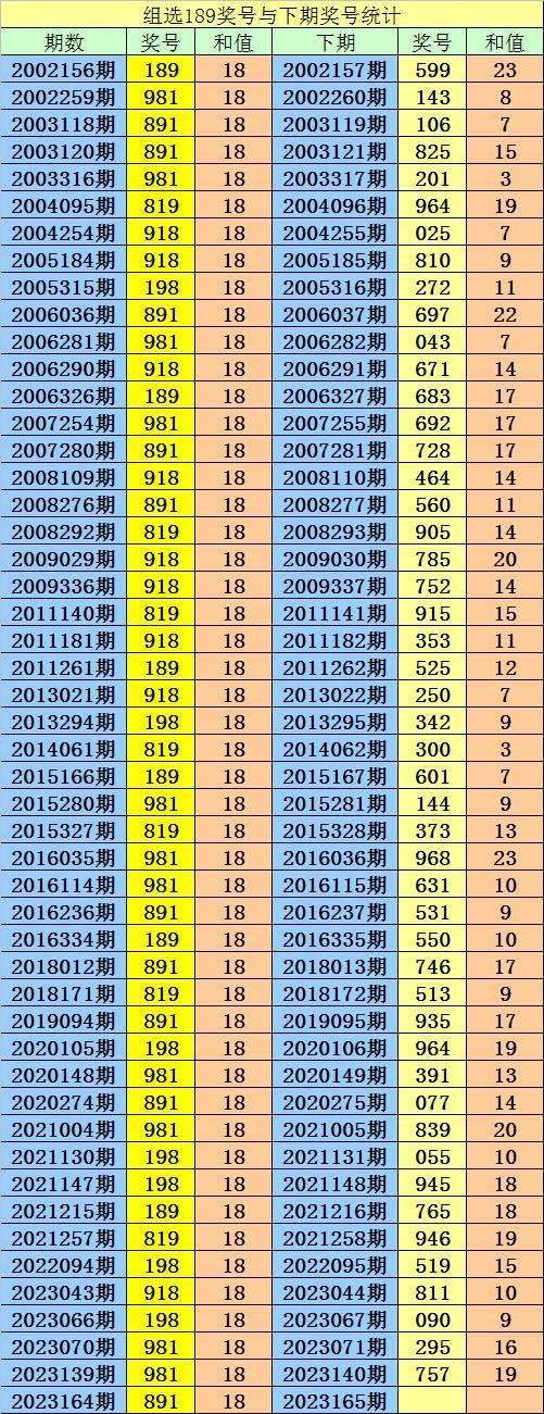 第2023164期3D奖号组选为:189,历史上该号码组选出现50次,下期号码分别为:599、143、106、825、201、964、025、810、272、697、043、671、683、692、728、464、560、905、785、752、915、353、525、250、342、300、601、144、373、968、631、531、550、746、513、935、964、391、077、839、055、945、765、946、519、811、090、295、757。